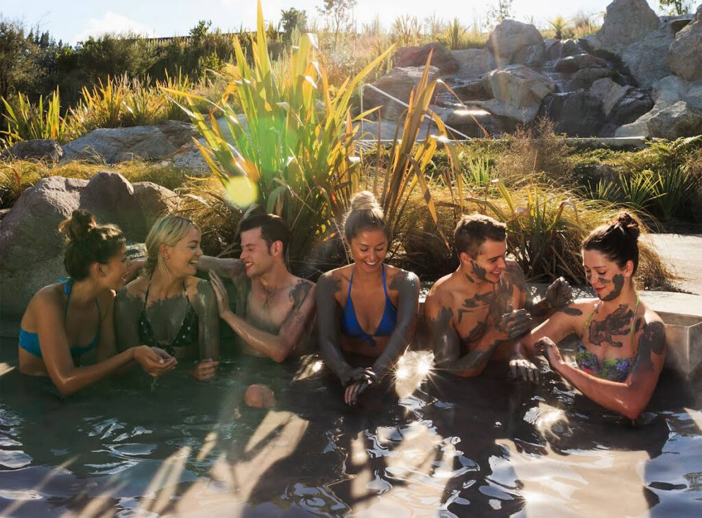 ヘルズゲートの最大の特徴は、地熱地帯の散策だけでなく、実際に泥温泉(マッドバス)や硫黄温泉に入れることです。