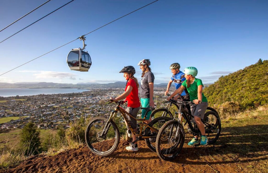 ゴンドラで山頂へ向かうと、ロトルア湖と街並みを一望できる絶景が広がります。