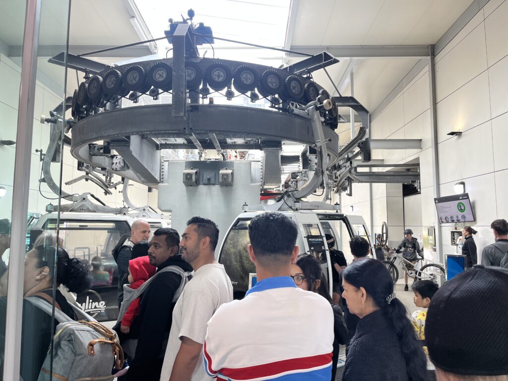 滑り切った後は、スキー場にあるようなゴンドラでスタート地点に戻れます。